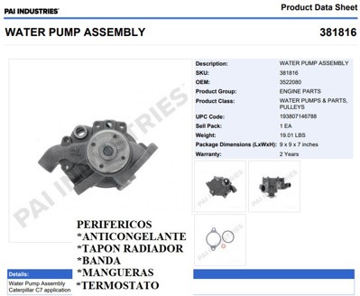 BOMBA DE AGUA 381816 CAT C7 C/PLACA 10R5406 PAI