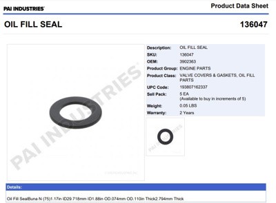 LIGA TAPON LLENADO ACEITE ISX ISB 136047 #PAI